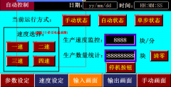 根據工藝要求,全自動印花機需要手動單步試機,整體自動運轉,參數調整,報警畫面提醒等。